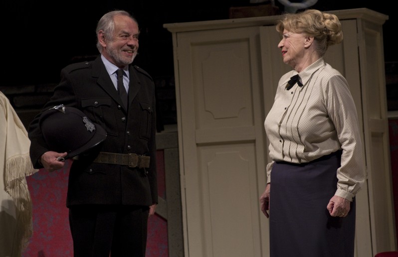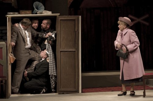 Znamenitá situační komedie s napínavou kriminální zápletkou, založená na nezdolné vitalitě jedné herečky (Libuše Švormová) a gagové sehranosti „zlodějského kvintetu“ herců (Ivan Řezáč, Václav Vydra, Filip Blažek, Martin Zahálka a Lukáš Příkazký). Irský scenárista Graham Linehan, u nás známý díky kultovním sitcomům The IT Crowd či Black Books, osobitě zpracoval námět britského filmu Pět lupičů a stará dáma z roku 1955 (exceloval v něm mimo jiné Peter Sellers), jehož hollywoodský remake Lupiči paní domácí natočili o půl století později bratři Coeni s Tomem Hanksem v hlavní roli. Nová divadelní verze plná černého humoru slavila velké úspěchy na West Endu a Divadlo na Vinohradech ji uvede v české premiéře.